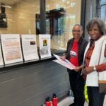 Marguarite Gooden (left), who has family ties to Fire Station #8, and Peggy Carter-Jones, treasurer of the John M. Langston Citizens Assn., put up displays about the firefighters and history…