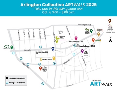 Join us for the fourth Annual Arlington ArtWalk, a vibrant celebration of creativity stretching from Clarendon to Ballston. On Saturday, Oct. 4, from 3:00 – 8:00 p.m. discover an exciting mix of galleries, artist studios and interactive art activations. Immerse yourself in live music, hands-on workshops, curated exhibitions and a bustling artisan market — all in one dynamic walkable experience.