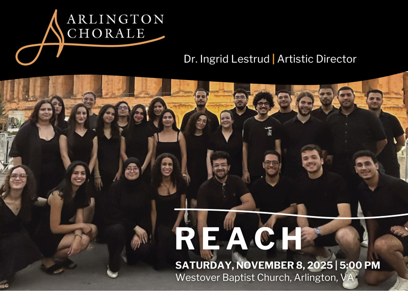 Westover Baptist Church 1125 Patrick Henry Drive, Arlington, Virginia, United StatesIn partnership with Tunisia88, this concert will bring together twenty-six talented young singers from Tunisia alongside the Arlington Chorale for an evening of music that spans languages and cultures. You’ll hear songs in several different languages, including original compositions about women's empowerment and a brand-new work by local composer Ashi Day. This is your chance…