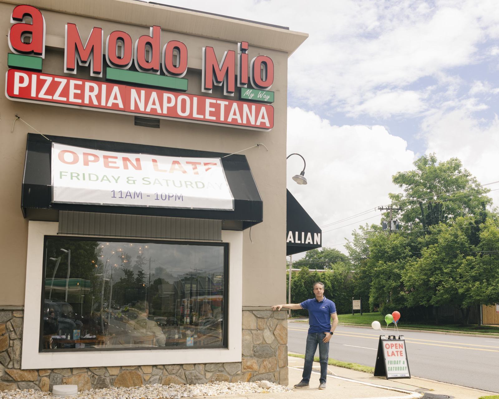 Rosario says that A Modo Mio is now more of a “date night” restaurant than the “after the soccer game” restaurant it used to be. Through the change, many locals have grown to love the new direction, and it has also brought in new clientele. Though they feature dishes from throughout Italy, they are famous for their Neapolitan pizzas. Since 2023, their pizza has been ranked in the top 50 in the US for Neapolitan pizza. They are proud members of an international organization called Vera Pizza Napoletana, which requires them to make their pizzas the way they were traditionally made in Naples. They have an Italian pizza oven, an Italian dough mixer, and use all Italian ingredients except for the cheese.